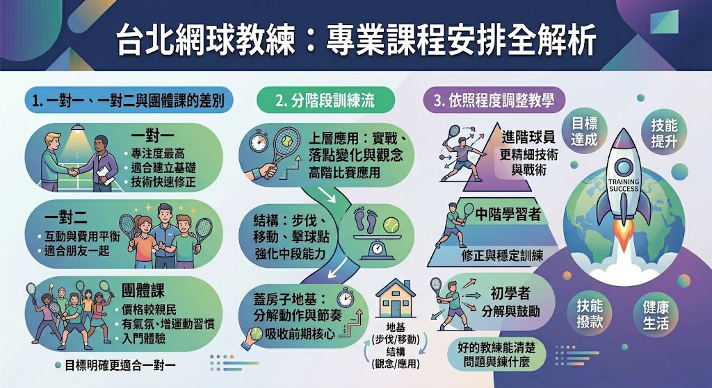 這篇文章會帶你整理網球教練的角色、適合上課的人、課程安排方式、挑選重點、收費差異與常見迷思。如果你最近正在找課、想試上,或只是想先搞清楚自己適不適合找網球教練,這篇就很適合先看。